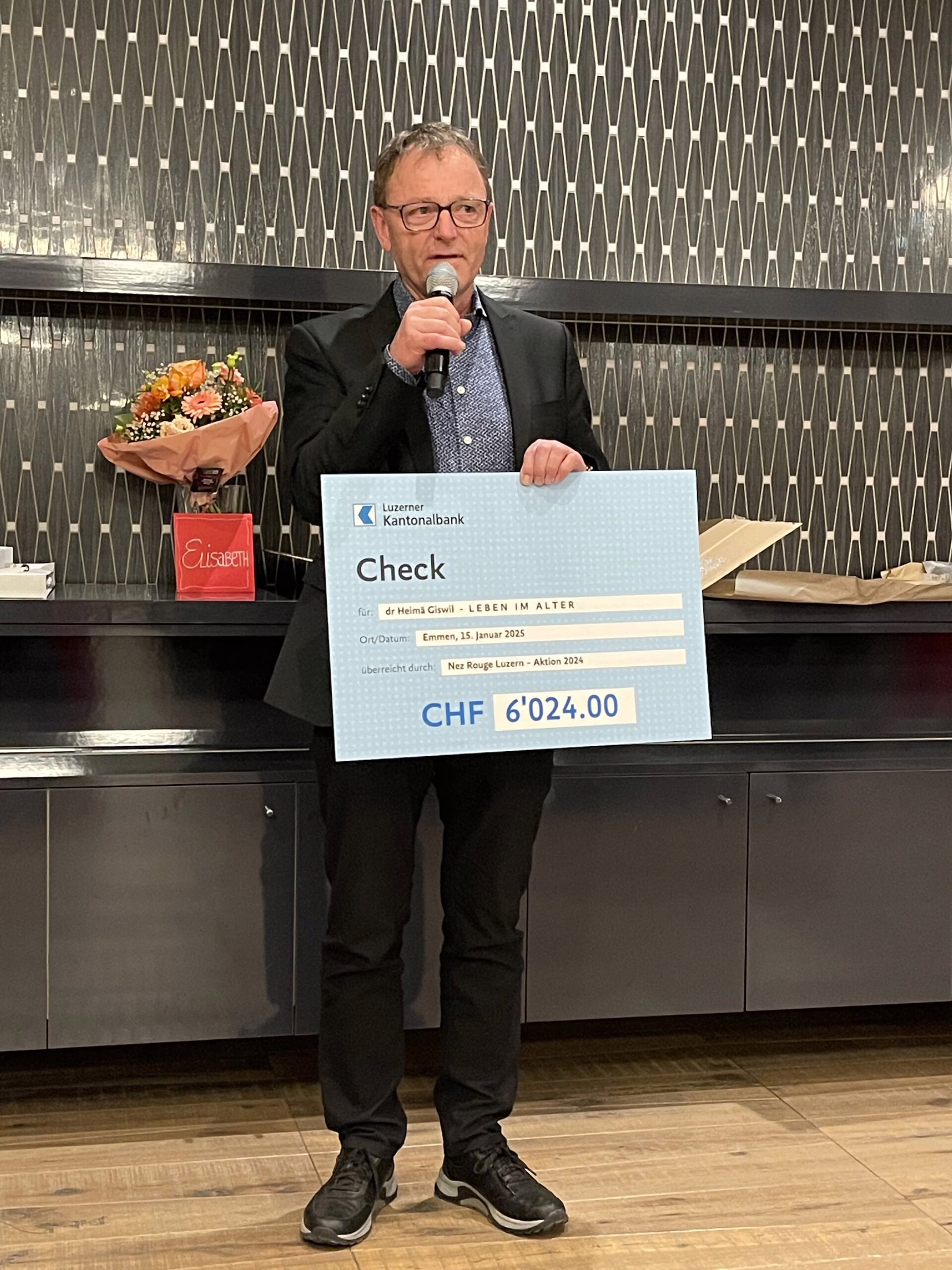 Im Rahmen der Spendenübergabe wurde in diesem Jahr der Betrag von Franken 6’024.00 übergeben. Empfänger war die Stiftung «dr Heimä», Giswil. Die Stiftung setzt sich für das Wohnen im Alter für Menschen mit Beeinträchtigungen ein. Mit Freude und grosser Anerkennung nahm Geschäftsführer Hubert «Hubi» Schumacher den Check dankend in Empfang. Er würdigt die ehrenamtliche Tätigkeit, welche durch Nez Rouge geleistet wird. «Hubi» ist Stolz auf Nez Rouge und drückt seine Wertschätzung gegenüber den Freiwilligen und unserem Beitrag zur Verkehrssicherheit aus.