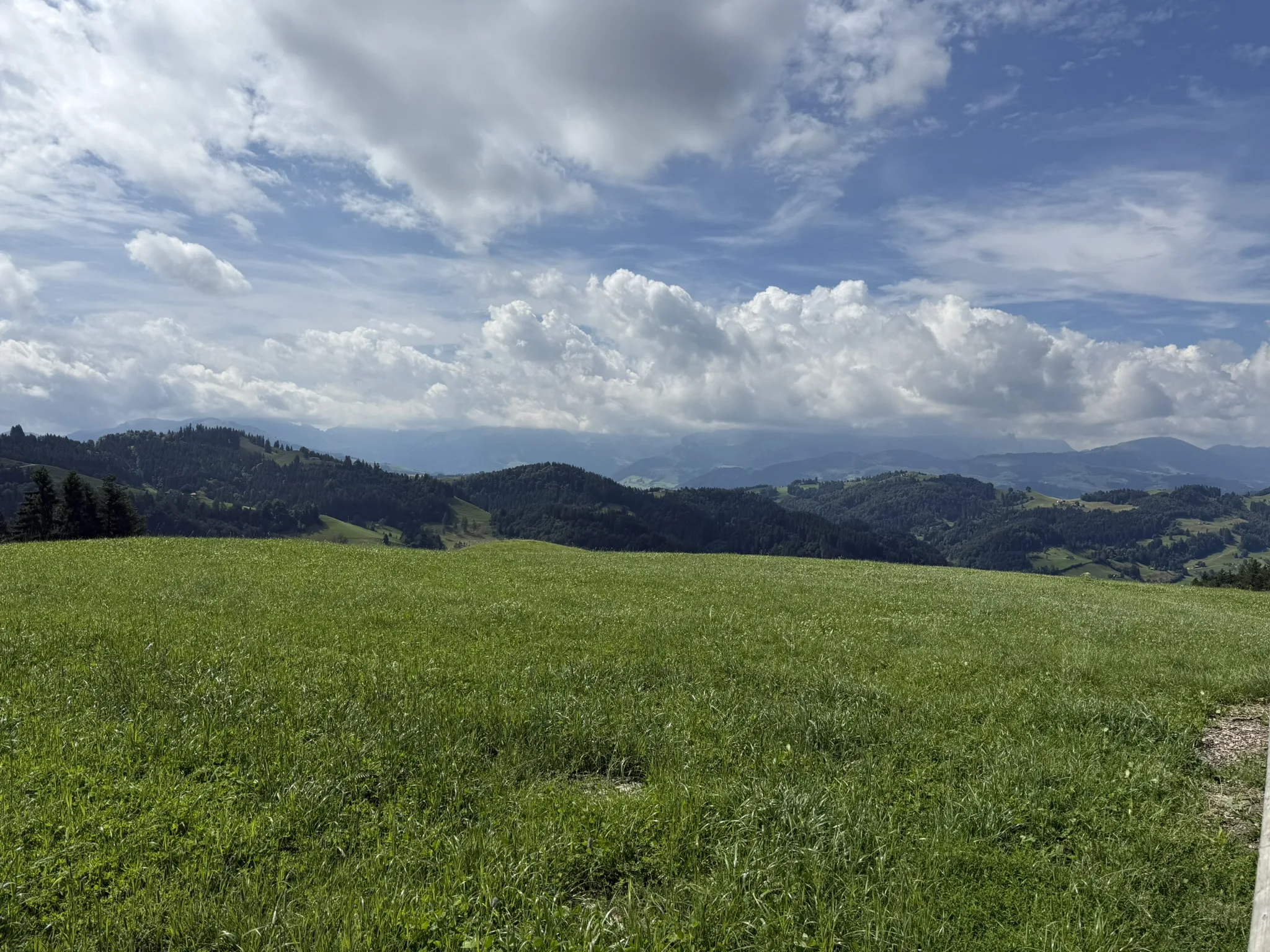 Das Ziel zur Mittagszeit, die Hohe Buche in Trogen, ein wunderschöner Aussichtspunkt hoch über dem Appenzellerland.